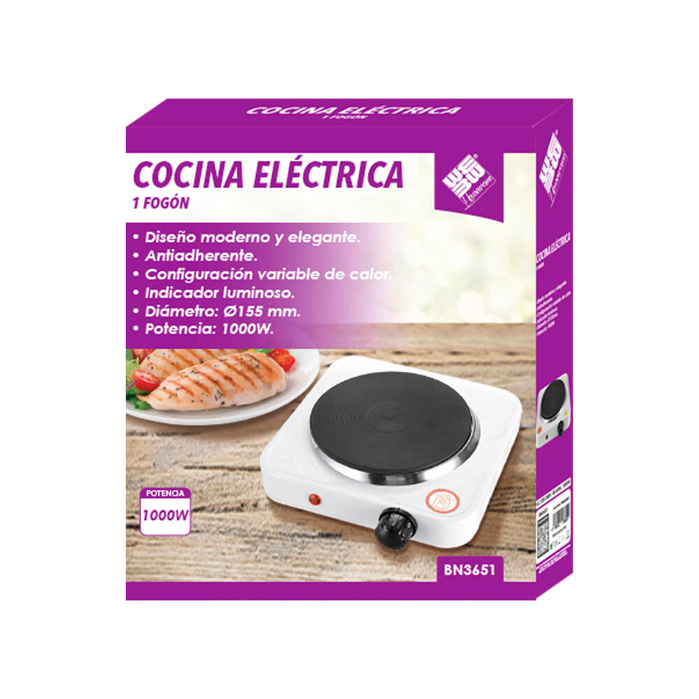 El Hornillo de Cocina Eléctrico 1000W es compacto, portátil y potente, con placa de hierro fundido antiadherente de 155 mm, ideal para dormitorios, oficinas, caravanas o espacios reducidos.
